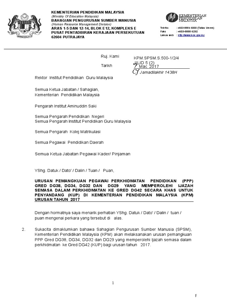Iklan Pemangkuan Ke Gred Dg42 Kup Urusan Tahun 2017 Pdf 1 Pdf
